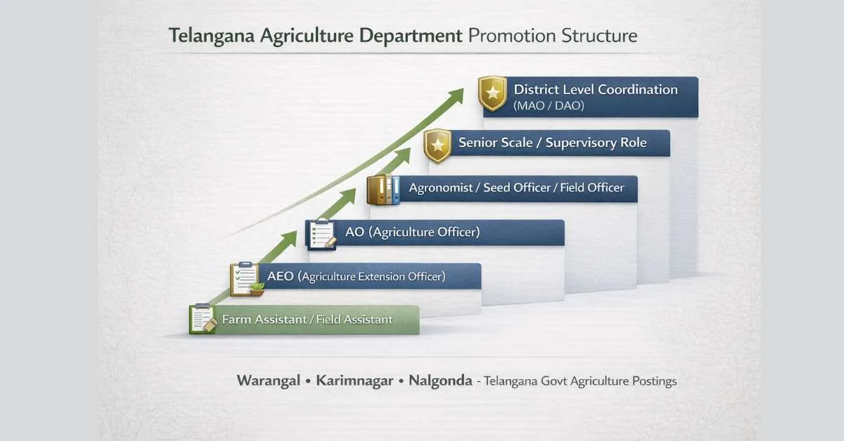 Warangal, Karimnagar, Nalgonda లో Field Agriculture Jobs అనేవి స్థిరత్వం, జిల్లా స్థాయి గౌరవం, దీర్ఘకాలిక కెరీర్ విలువ కలిగినవి.