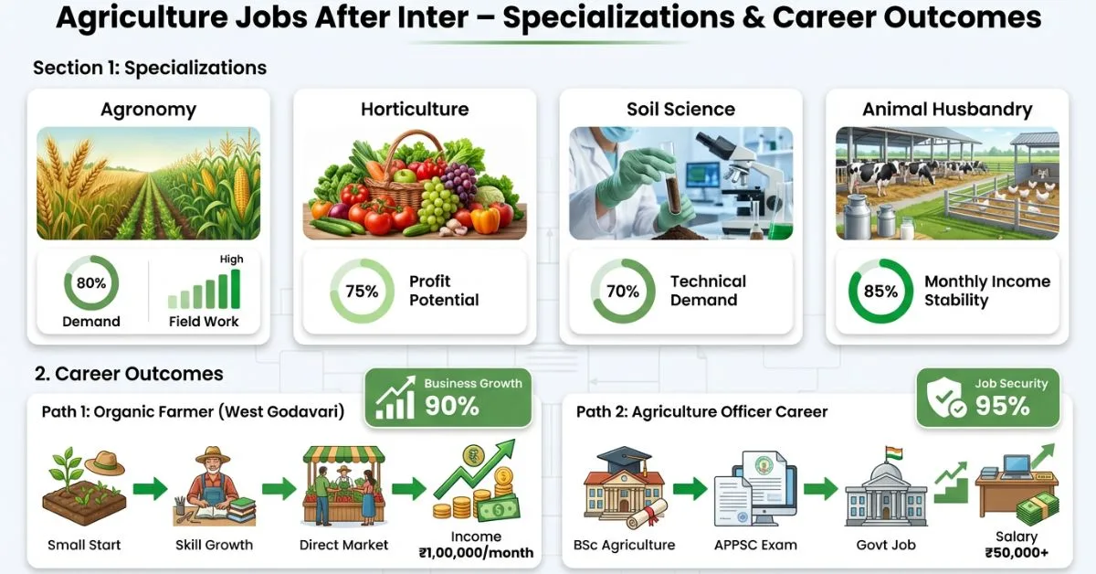 ఈ కారణాల వల్ల Agriculture Jobs After Inter APలో strong career option అవుతోంది.