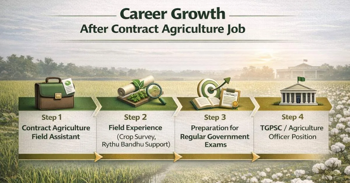 Agriculture Jobs Without TGPSC ఒక వేగవంతమైన ప్రవేశ మార్గంగా పని చేస్తుంది — ముఖ్యంగా తక్షణ ఉద్యోగ అవసరం ఉన్న Telangana వ్యవసాయ పట్టభద్రులకు.