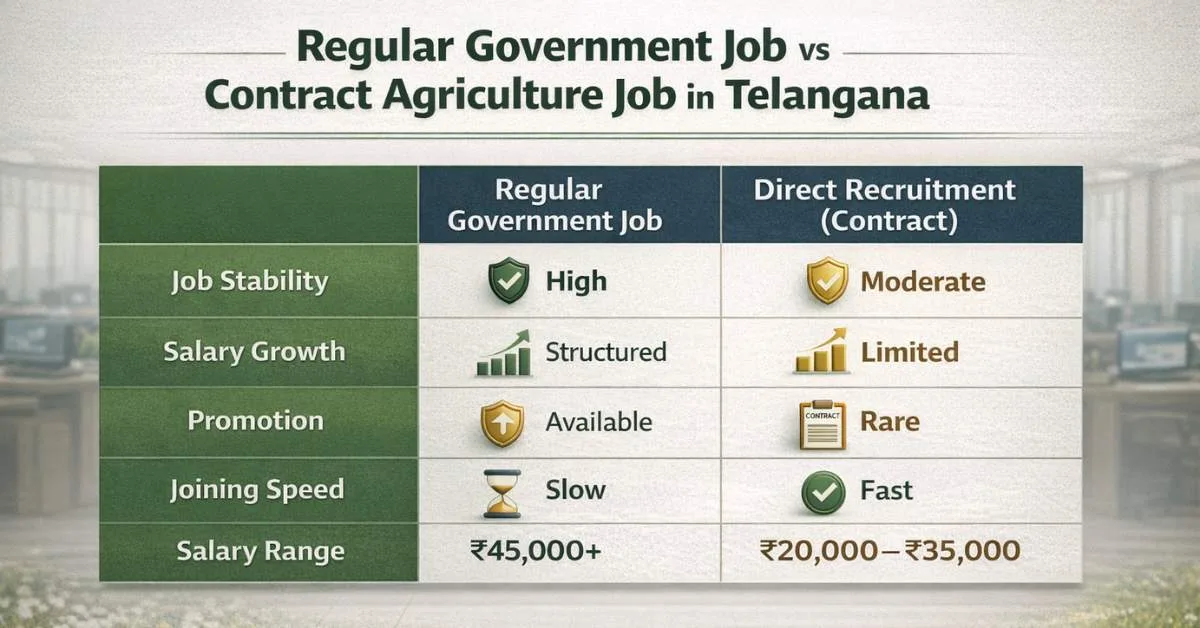 Agriculture Jobs Without TGPSC salary comparison between regular and contract jobs in Telangana