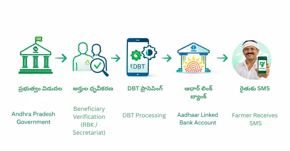 Annadatha Sukhibhava Scheme కింద ఇప్పటికే లబ్ధిదారులుగా ఉన్న రైతులకు ఈ విడత చెల్లింపులు Automatic DBT (Direct Benefit Transfer) విధానంలోనే వారి బ్యాంక్ ఖాతాల్లో నేరుగా జమ చేయబడతాయి. ప్రత్యేకంగా మళ్లీ అప్లై చేయాల్సిన అవసరం సాధారణంగా ఉండదు. అయితే బ్యాంక్ ఖాతా–ఆధార్ లింకింగ్, e-KYC వంటి వివరాలు సరిగా ఉన్నాయో లేదో ముందుగా నిర్ధారించుకోవడం మంచిది.