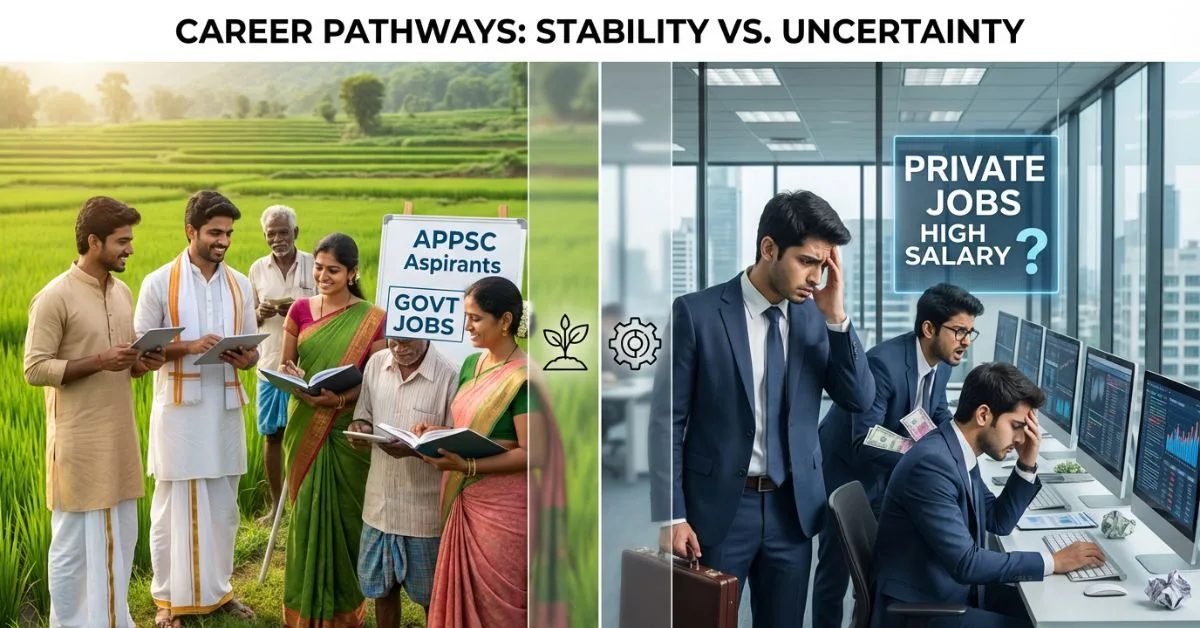 - ప్రభుత్వ ఉద్యోగాలు మరియు ప్రైవేట్ ఉద్యోగాల మధ్య confusion