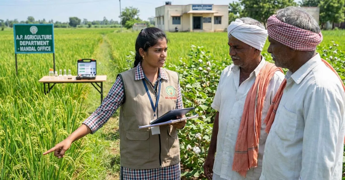 Guntur జిల్లాకు చెందిన Suresh గారు APPSC ద్వారా BSc Agriculture Jobs Andhra Pradesh లో AO (Agriculture Officer) గా ఎంపికై, Mandal-level field visits చేస్తూ, రైతులతో close interaction చేస్తూ, వారి సమస్యలు, పంటల పరిస్థితులు, మరియు గ్రామాల వ్యవసాయ అభివృద్ధికి సంబంధించిన projects ను supervise చేస్తున్నారు. ప్రతి రోజు రైతులకు guidance ఇస్తూ, soil మరియు crop testing లో సహాయం చేస్తూ, Annadatha Sukhibhava Scheme అమలు చేయడంలో ముఖ్య పాత్ర పోషిస్తున్నారు.